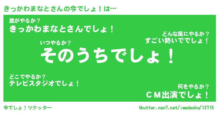 | 胡散臭い通販商品みたいなあだ名 | 『必ず成功する霊験あらたかなお札…その名も「きっかわまなと」』 |