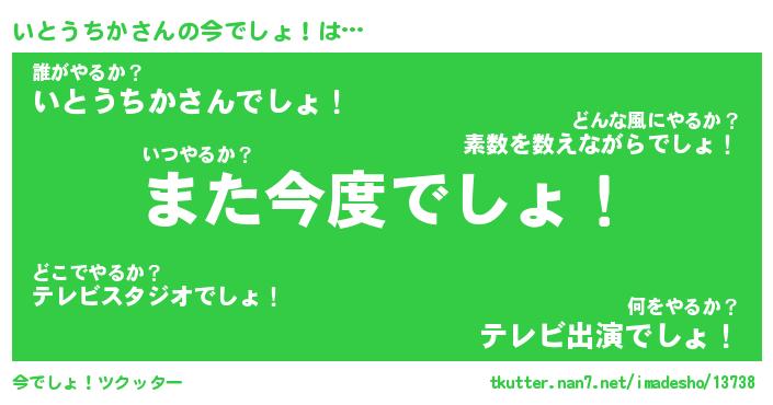 | 胡散臭い通販商品みたいなあだ名 | 『億万長者になれるブレスレット…その名も「いとうちか」』 |