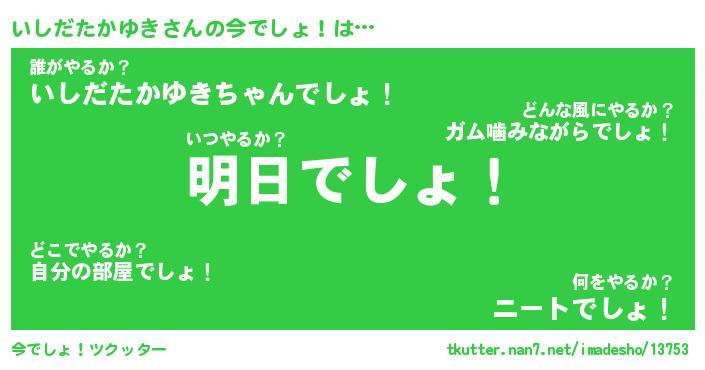 | 恥ずかしいあだ名 | 『プリティーいしだたかゆき』『いしちん』 |