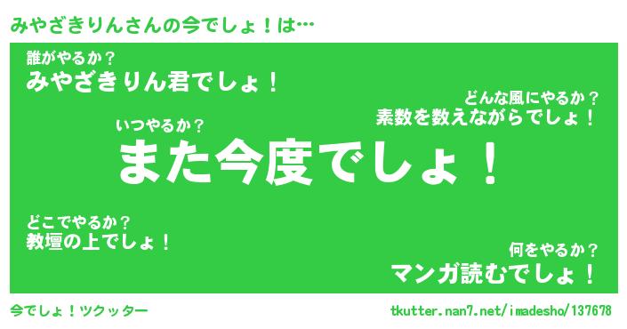 | ヒーロー風カッコイイあだ名 | 『スーパーミヤザキリン』『炎刃騎士ミヤ』 |