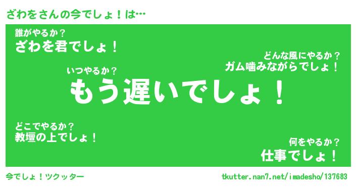 | 肩書あだ名 | 『ざわを店長』『ざわを総理大臣』 |