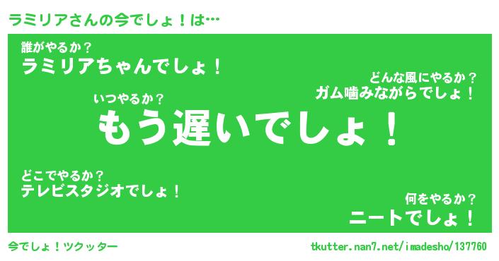 | 恥ずかしいあだ名 | 『プリティーラミリア』『ラミっちょ』 |