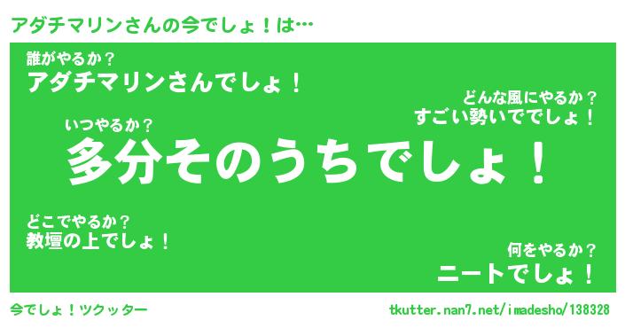 | 男性向けラノベタイトル風あだ名 | 『アダチマリンの憂鬱』 |