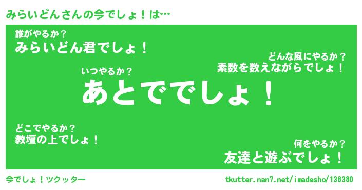 | 胡散臭い通販商品みたいなあだ名 | 『モテモテ間違いなし霊験あらたかなお札…その名も「みらいどん」』 |