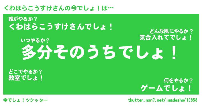 | 胡散臭い通販商品みたいなあだ名 | 『モテモテ間違いなし霊験あらたかなお札…その名も「くわはらこうすけ」』 |