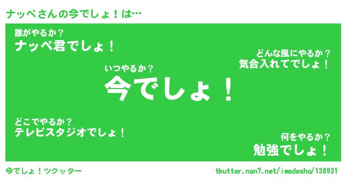 | ヒーロー風カッコイイあだ名 | 『スーパーナッペ』『ウルトラナッペマン』 |
