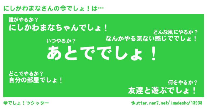 | 胡散臭い通販商品みたいなあだ名 | 『モテモテ間違いなし霊験あらたかなお札…その名も「にしかわまな」』 |