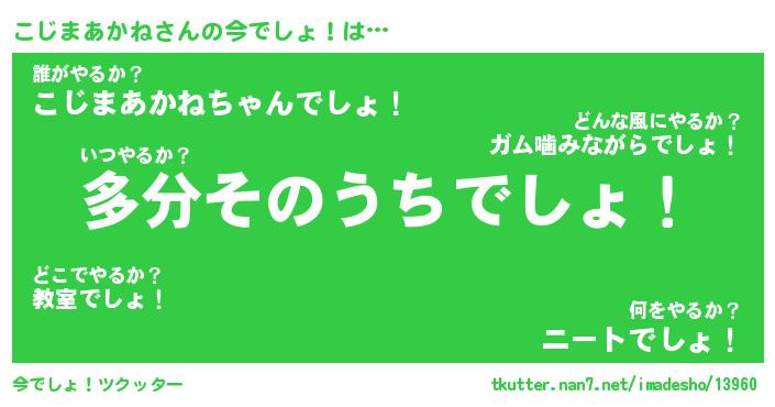 | 男性向けラノベタイトル風あだ名 | 『こじまあかねの憂鬱』 |