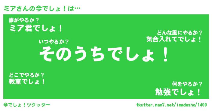 | 男性向けラノベタイトル風あだ名 | 『ミアの憂鬱』『ノーゲーム・ノーミア』 |