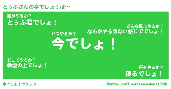 | 男性向けラノベタイトル風あだ名 | 『とぅふの憂鬱』 |