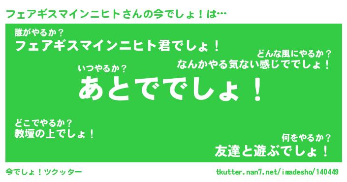 | ヘコむあだ名 | 『フェにゅー』『豆乳』『フェぷりん』 |