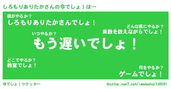 | 男性向けラノベタイトル風あだ名 | 『しろもりありたかの憂鬱』 |