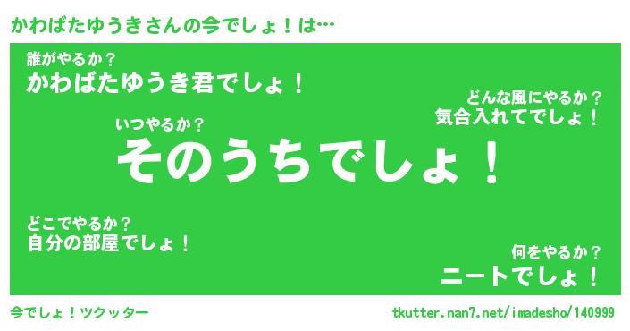 | 胡散臭い通販商品みたいなあだ名 | 『必ず成功する霊験あらたかなお札…その名も「かわばたゆうき」』 |