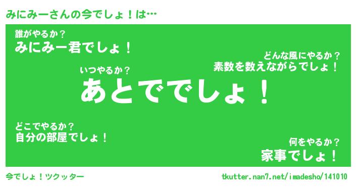 | ヘコむあだ名 | 『みにふぇ~』『豆乳』『みにっちょ』 |