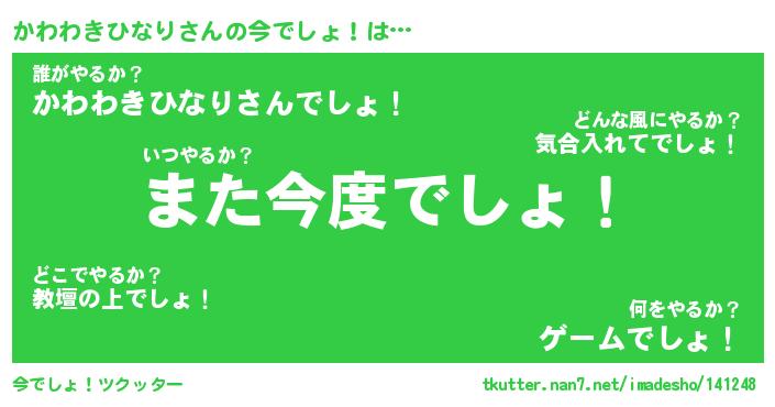 | 胡散臭い通販商品みたいなあだ名 | 『億万長者になれる水晶球…その名も「かわわきひなり」』 |