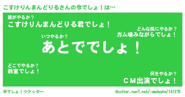 | 欧米人風あだ名 | 『マイケルこすけりんまんどりる』 |