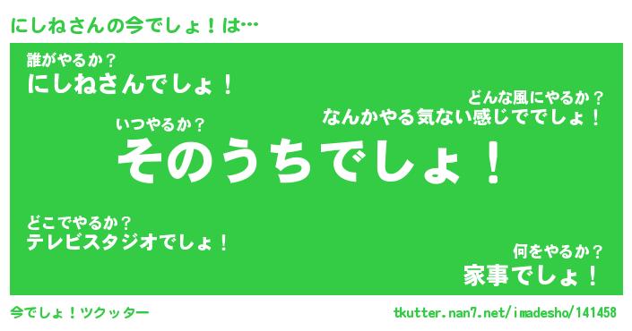 | 胡散臭い通販商品みたいなあだ名 | 『必ず成功する霊験あらたかなお札…その名も「にしね」』 |