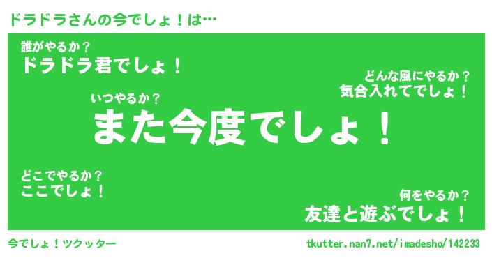 | 2回繰り返すあだ名 | 『ドラドラ』『ドドララ』『うねうね』 |