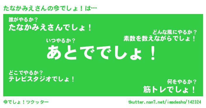 | 肩書あだ名 | 『たなかみえ社長』『たなかみえ国家主席』 |