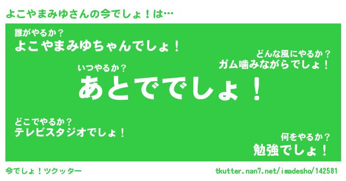 | ヒーロー風カッコイイあだ名 | 『スーパーヨコヤマミユ』『黄金騎士ヨコ』 |
