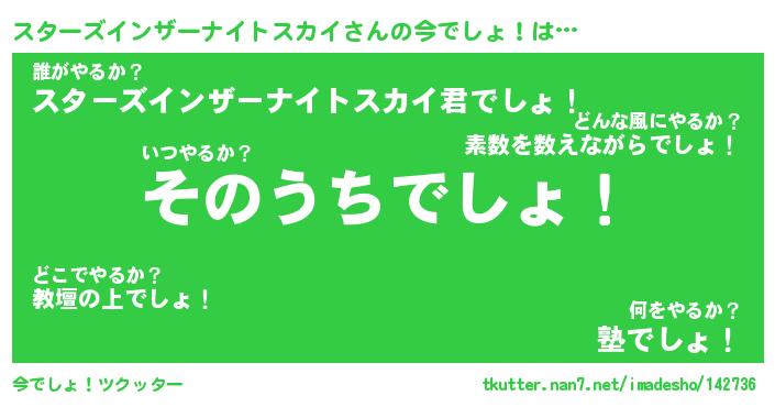 | 胡散臭い通販商品みたいなあだ名 | 『必ず成功する霊験あらたかなお札…その名も「スターズインザーナイトスカイ」』 |