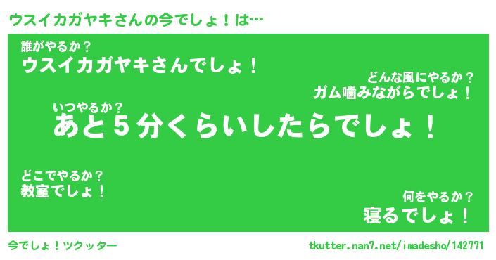 | 自動車の名前っぽいあだ名 | 『ウスティマ』『ウクア』『デミウ』 |