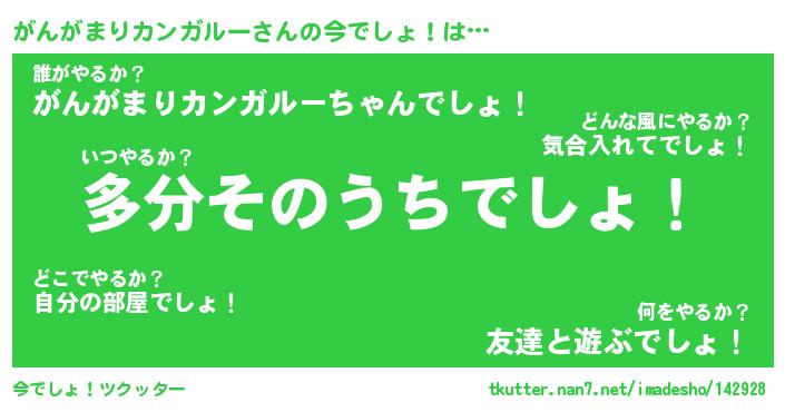 | 男性向けラノベタイトル風あだ名 | 『がんがまりカンガルーの憂鬱』 |
