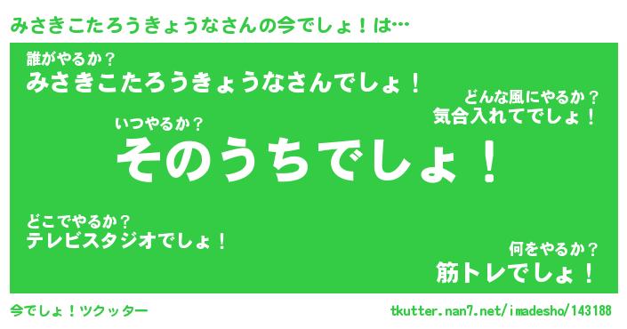 | 伝説のあだ名 | 『伝説のスナイパーみさきこたろうきょうな』 |