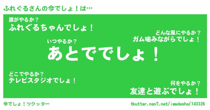 | 意味不明あだ名 | 『ペロリンふれぐる』『永久保存ふれぐる』 |