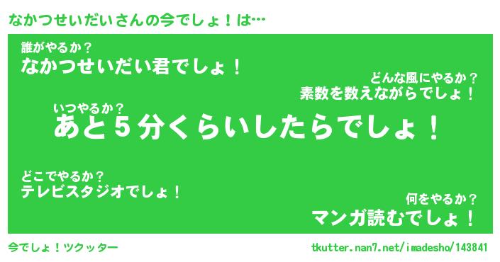 | 胡散臭い通販商品みたいなあだ名 | 『億万長者になれるブレスレット…その名も「なかつせいだい」』 |