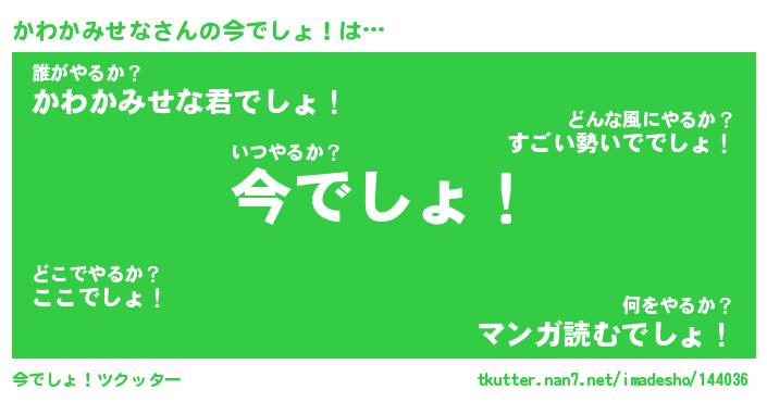 | 胡散臭い通販商品みたいなあだ名 | 『必ず成功するブレスレット…その名も「かわかみせな」』 |