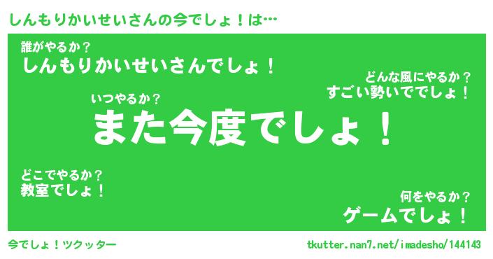 | 伝説のあだ名 | 『封印されしスナイパーしんもりかいせい』 |