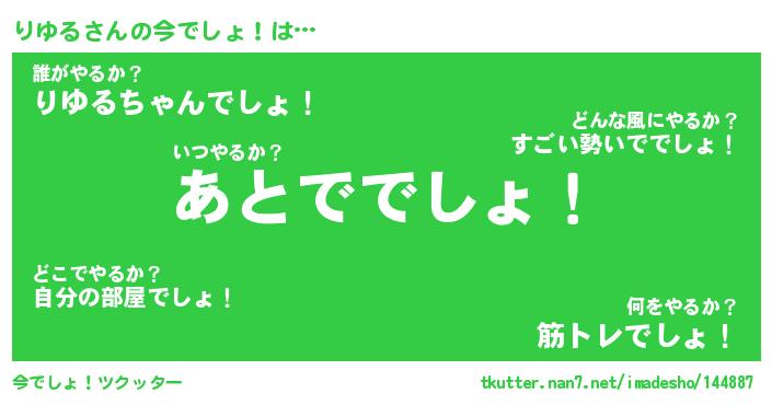| ヘコむあだ名 | 『りゆもー』『酢こんぶ』『りゆを』 |