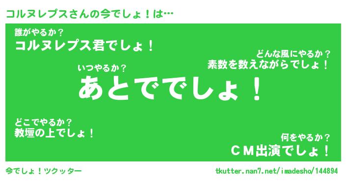 | ヘコむあだ名 | 『コルにー』『なまこ酢』『コル太郎』 |