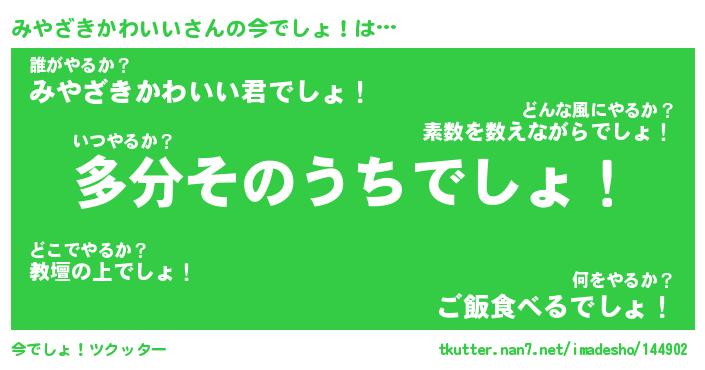 | 伝説のあだ名 | 『不死鳥のスナイパーみやざきかわいい』 |