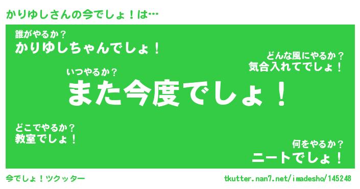 | ヘコむあだ名 | 『かりにゅー』『酢こんぶ』『かりを』 |