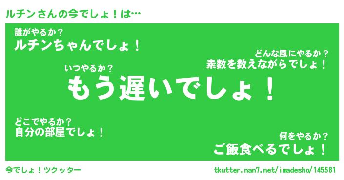 | 男性向けラノベタイトル風あだ名 | 『ルチンの憂鬱』 |