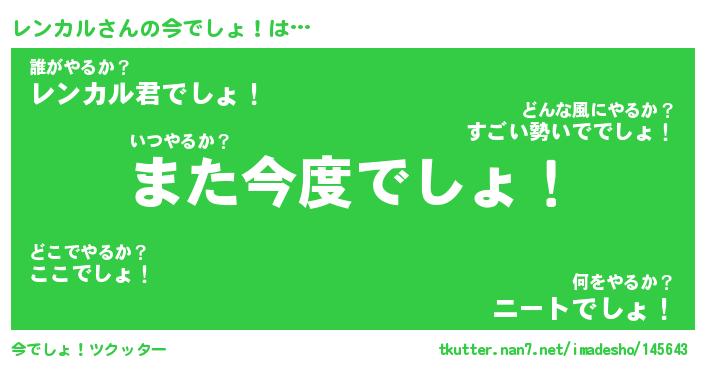 | ヘコむあだ名 | 『レンにゅー』『豆乳』『レンっぺ』 |