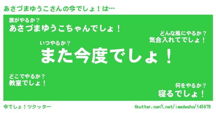 | 伝説のあだ名 | 『封印されしスナイパーあさづまゆうこ』 |