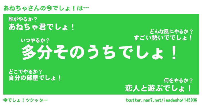 | 意味不明あだ名 | 『ペロリンあねちゃ』『永久保存あねちゃ』 |