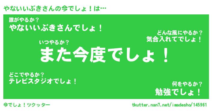 | 胡散臭い通販商品みたいなあだ名 | 『億万長者になれる霊験あらたかなお札…その名も「やないいぶき」』 |