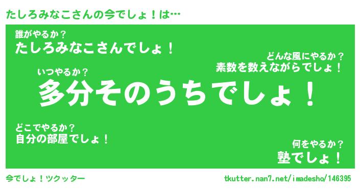 | 恥ずかしいあだ名 | 『プリティーたしろみなこ』『たしっちょ』 |