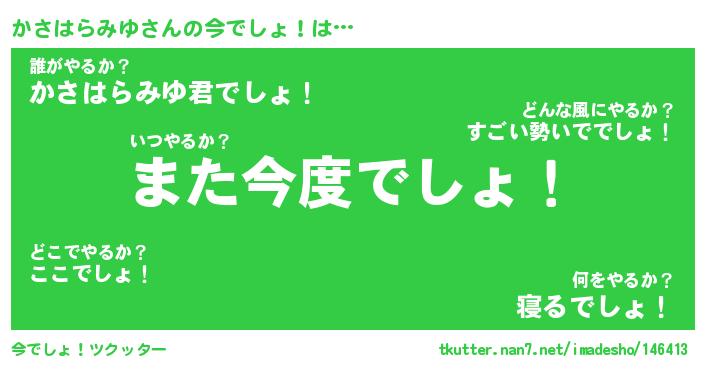 | 胡散臭い通販商品みたいなあだ名 | 『億万長者になれるブレスレット…その名も「かさはらみゆ」』 |
