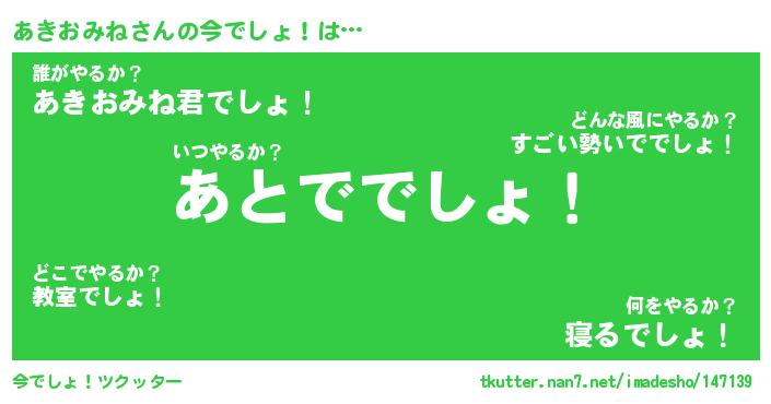 | 肩書あだ名 | 『あきおみね社長』『あきおみね国家主席』 |