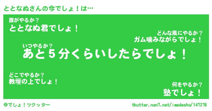 | 肩書あだ名 | 『ととなぬ社長』『ととなぬ総理大臣』 |