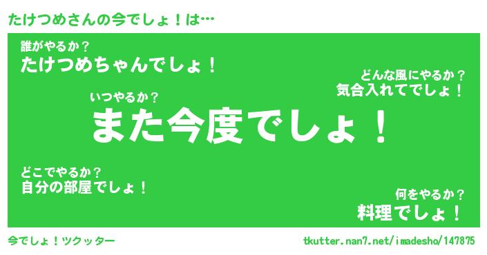 | ファンタジー風あだ名 | 『タケフェル』『エターナルタケツメー』 |