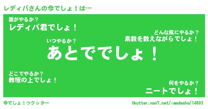 | ピコ太郎風あだ名 | 『レコ三郎』『ピレ二郎』『レデ次郎』 |