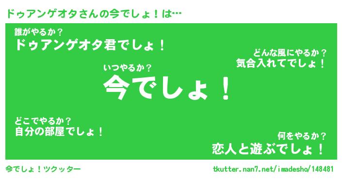 | 男性向けラノベタイトル風あだ名 | 『ドゥアンゲオタの憂鬱』 |