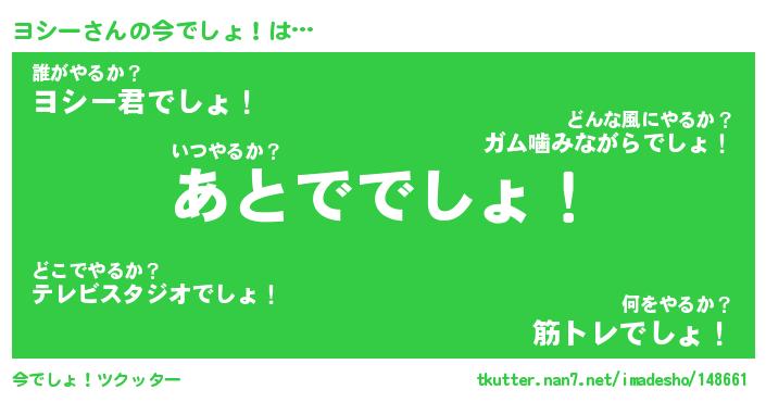 | 意味不明あだ名 | 『ペロリンヨシー』『ヨシーフォーエバー』 |