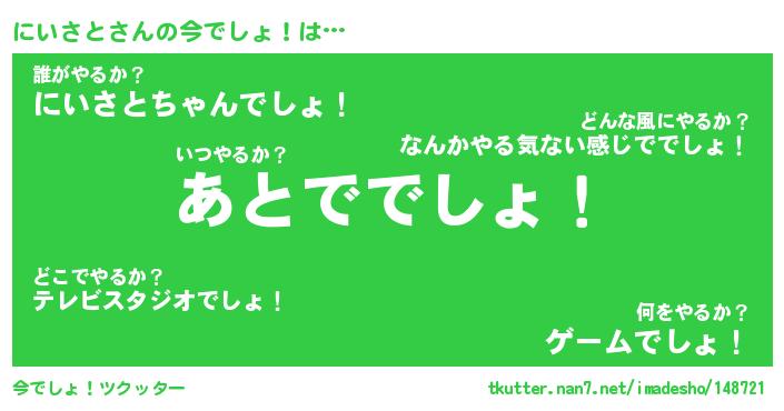| 意味不明あだ名 | 『ペロリンにいさと』『永久保存にいさと』 |